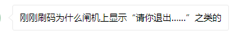 问:刷码时闸机显示“请你退出……”,然后门也不打开,是机器故障了吗?