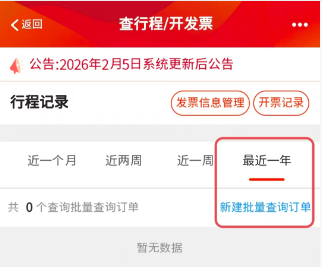 答:系统默认是一个月内的,最长可以查到一年以内的,具体操作为:点最近一年-点蓝色的小字“新建批量查询订单”-选择需要的日期进行查询。
